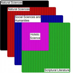 We find from our research and study that the wisdom core of scripture is based upon the study of nature by its authors and is as scientific as our modern sciences. To filter out the wisdom core of scripture from its exclusive doctrine and dogma which compromise reality, we use a four layered lens called Holistic Science in Figure 1 to research how we can use the core scriptural wisdom to benefit humanity in alleviating its suffering.